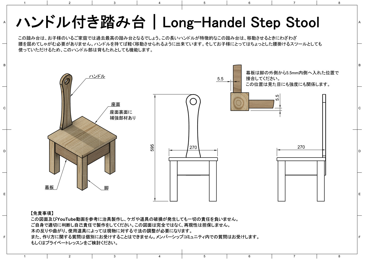 必要に応じてこの図面にすでにカットして、ポケットホールの穴も加工済みのキットも販売しています。そちらもご利用下さい。